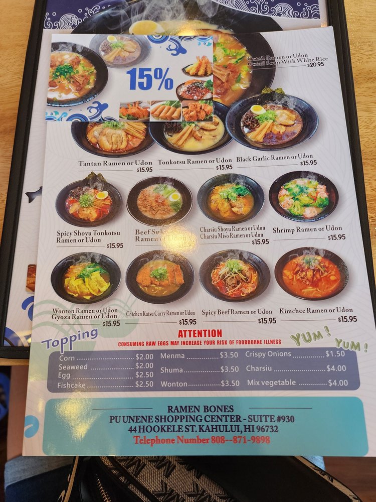 Welcome to Ramen Bones, the latest culinary gem in Maui's vibrant food scene. Located at 44 Ho'okele St, this ramen restaurant offers a variety of delightful dishes that cater to all tastes. With a cozy atmosphere and a focus on family-friendly dining, it invites both locals and tourists to jump in and savor the experience.